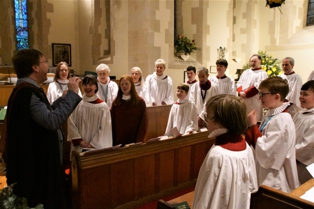 The Choir now has its own website with further information, including a detailed schedule of music to be sung, see https://music.stgilesfarnborough.org.uk/