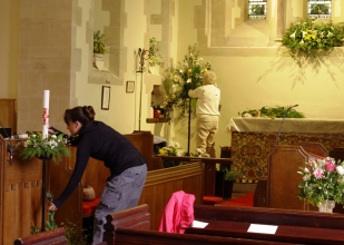 Flowers are arranged in St. Giles by several teams of volunteers who work in rotation. Each team arrange their flowers, usually on Friday afternoons, once a month. More help is always welcome, from the complete beginner to the more experienced. None of the ladies currently on the rota have any formal training but they consider it to be very enjoyable, a great way to make friends and as a service to God and the church.All displays are created entirely by the members of the St. Giles team. At the major festivals of Christmas, Mothering Sunday, Easter and Harvest all the teams work together to fill the church with beautiful colours and aromas. There are no flowers in church during the reflective time of Lent and only greenery during Advent.