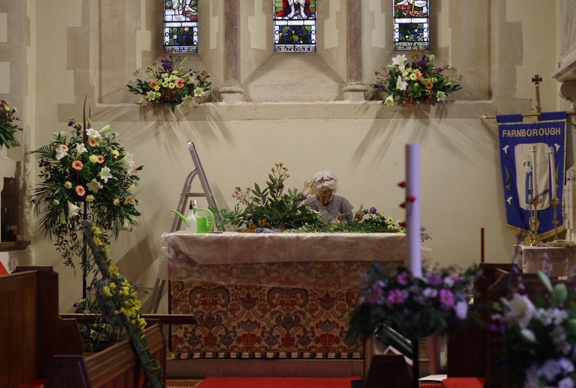 The photos in this column were taken during preparation for Easter. All displays were created entirely by the members of the St. Giles team. At the major festivals of Christmas, Mothering Sunday, Easter and Harvest all the teams work together to fill the church with beautiful colours and aromas. There are no flowers in church during the reflective time of Lent, and only greenery during Advent. <