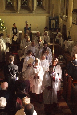 Prior to the Service there was last minute discussion on precisely what would happen when the Rt Revd Dr Brian Castle, Bishop of Tonbridge, visited the ringing chamber during the Service to dedicate the bells. Having sorted this out, we rang the bells up to the start time of the Service and then went to our various pews. The church was full and included many people involved with the bell installation, various invited guests, dignitaries and donors as well as the three previous Rectors.