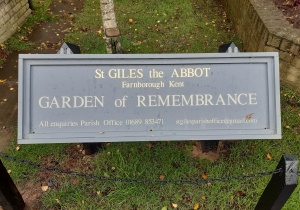 In 1956, when cremation started to become an acceptable alternative to interment, it was decided at St. Giles to provide a walled rose garden where ashes could be scattered and small metal plaques inserted into the groun.