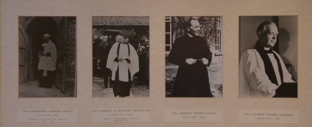 There were eight Rectors in the twentieth century, who are shown in these photographs, which are on display by the font in the church..